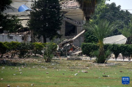 这是5月7日在巴基斯坦东部旁遮普省谢赫布拉地区穆里德盖镇拍摄的遭印度导弹破坏的建筑。新华社发(萨贾德摄)