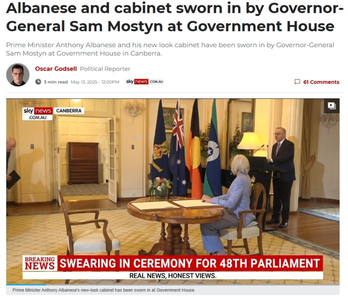 中新网5月13日电 据美联社报道,澳大利亚新一届内阁于当地时间13日宣誓就职。