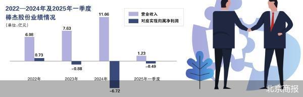 财务数据显示,2022—2024年以及2025年一季度,棒杰股份实现营业收入分别约为6.08亿元、7.63亿元、11.06亿元、1.23亿元,对应实现归属净利润分别约为7287.22万元、-8843.1万元、-6.72亿元、-4862.73万元。